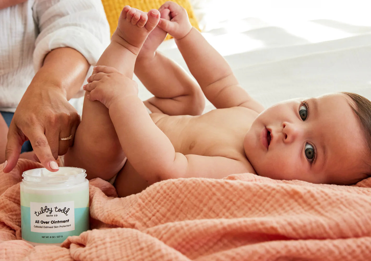 When we say All Over Ointment we mean ALL OVER OINTMENT! Every baby is different and sensitive skin can present in so many ways. Your little one might have dry skin on the back of their arms, bumpy texture on their face or eczema prone areas all over. AOO to the rescue!